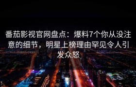 番茄影视官网盘点:爆料7个你从没注意的细节,明星上榜理由罕见令人引发众怒