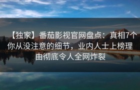 【独家】番茄影视官网盘点:真相7个你从没注意的细节,业内人士上榜理由彻底令人全网炸裂
