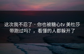 这次我不忍了 · 你也被糖心tv 美杜莎带跑过吗?看懂的人都躲开了 前几天刷短视频时,看到一个熟悉又...